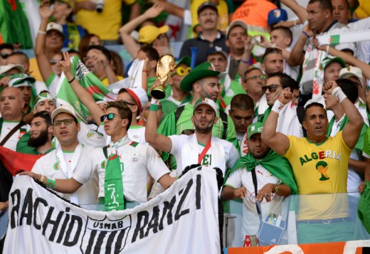 epa04262919 Supporters of Algeria cheer before the FIFA World Cup 2014 group H preliminary round match between Belgium and Algeria at the Estadio Mineirao in Belo Horizonte, Brazil, 17 June 2014.
