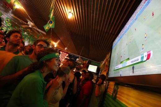 Soccer fans watch Brazil play Mexico in FIFA World Cup 2014