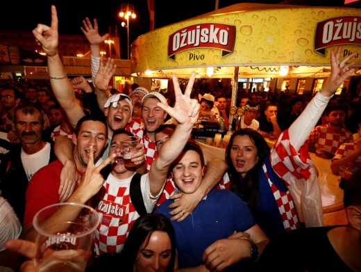 epa04265983 Croatians cheer their team as they watch in downtown Zagreb, Croatia, 18 June 2014, the soccer match of the FIFA World Cup 2014 between Cameroon and Croatia in Brazil. EPA/ANTONIO BAT