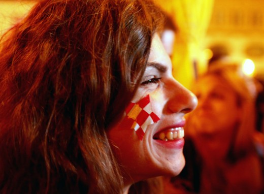 epa04265984 Croatians cheer their team as they watch in downtown Zagreb, Croatia, 18 June 2014, the soccer match of the FIFA World Cup 2014 between Cameroon and Croatia in Brazil. EPA/ANTONIO BAT