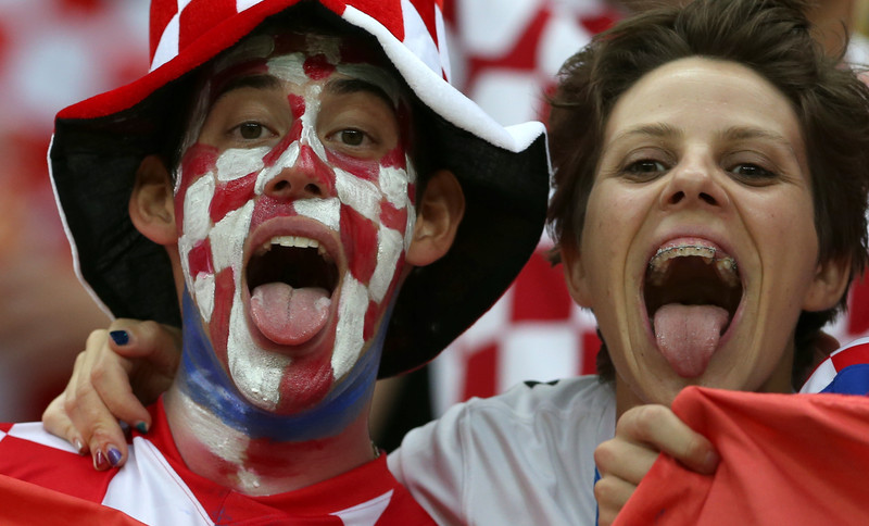 epa04265881 Supporters of Croatia cheer during the FIFA World Cup 2014 group A preliminary round match between Cameroon and Croatia at the Arena Amazonia in Manaus, Brazil, 18 June 2014.