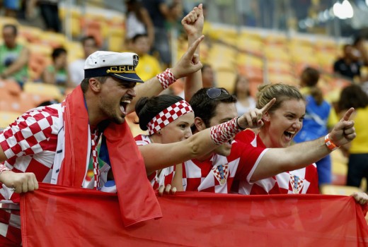 epa04265724 Supporters of Croatia cheer prior to the FIFA World Cup 2014 group A preliminary round match between Cameroon and Croatia at the Arena Amazonia in Manaus, Brazil, 18 June 2014.