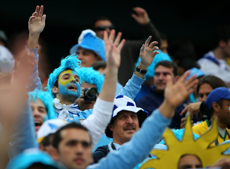 epa04267489 Supporters of Uruguay cheer before the FIFA World Cup 2014 group D preliminary round match between Uruguay and England at the Arena Corinthians in Sao Paulo, Brazil, 19 June 2014.