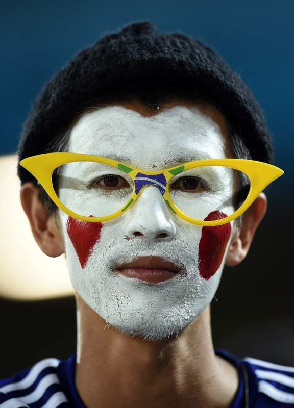 epa04267956 Japan soccer fan during the FIFA World Cup 2014 group C preliminary round match between Japan and Greece at the Estadio Arena das Dunas in Natal, Brazil, 19 June 2014.