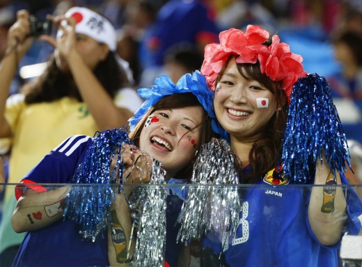 epa04267979 Japanese fans smile before the FIFA World Cup 2014 group C preliminary round match between Japan and Greece at the Estadio Arena das Dunas in Natal, Brazil, 19 June 2014.