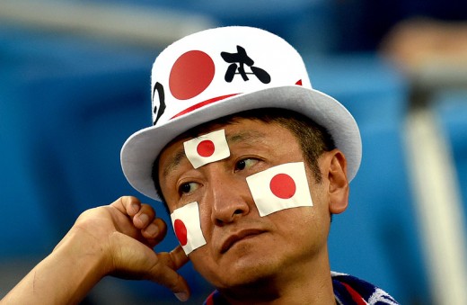 epa04267793 Japan soccer fan during the FIFA World Cup 2014 group C preliminary round match between Japan and Greece at the Estadio Arena das Dunas in Natal, Brazil, 19 June 2014.