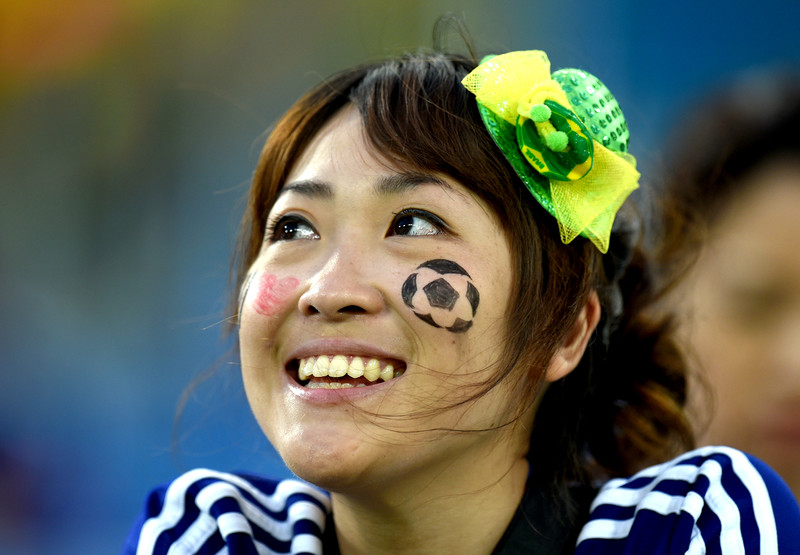 epa04267794 Japan soccer fan during the FIFA World Cup 2014 group C preliminary round match between Japan and Greece at the Estadio Arena das Dunas in Natal, Brazil, 19 June 2014.