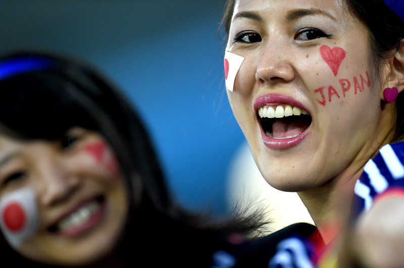 epa04267795 Japan soccer fan during the FIFA World Cup 2014 group C preliminary round match between Japan and Greece at the Estadio Arena das Dunas in Natal, Brazil, 19 June 2014.