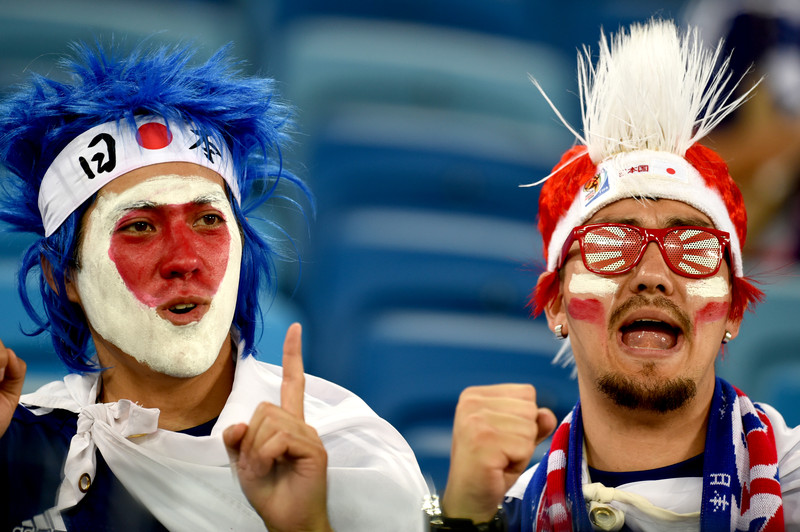 epa04267858 Japan soccer fan during the FIFA World Cup 2014 group C preliminary round match between Japan and Greece at the Estadio Arena das Dunas in Natal, Brazil, 19 June 2014.