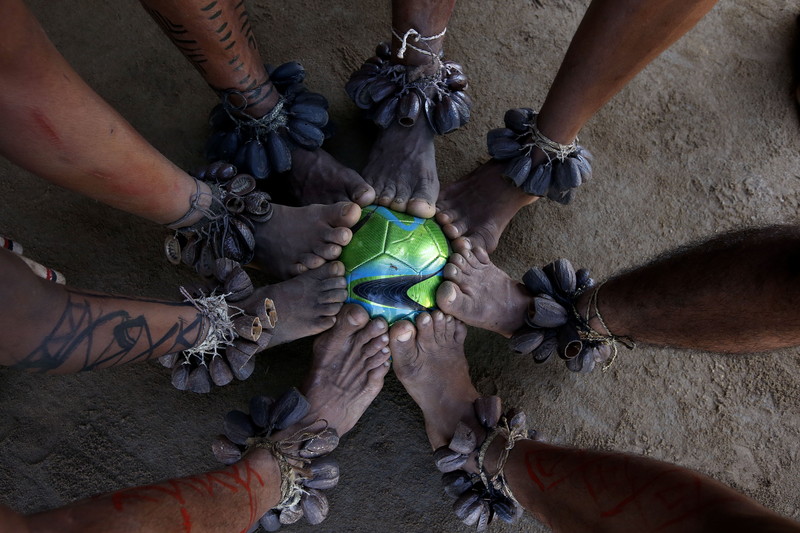 epa04259833 Tatuyo tribe Indian and children of Amazon play soccer on Tupe village in Amazon, some 35km northwest of Manaus, Brazil, 15 June 2014. The FIFA World Cup 2014 in Brazil is running from 12 June to 13 July 2014. EPA/JEON HEON-KYUN