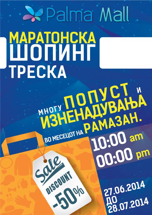 – Ги овозможуваме попустите во текот на цел јули и во текот на целиот ден до доцна во ноќта затоа што на тој начин сакаме вистински и со дело да покажеме дека „Палма мол“ е отворен за сите и дека  секој може да дојде и да пазарува тука. Попустите се во духот на рамазанската традиција и убедување дека секој треба да сподели, дека оној што има повеќе, дава на оној што нема. Ова е месец кога сите треба да го добиеме она што го посакуваме. Ова е време на хуманост и време кога се истакнува солидарноста меѓу луѓето, а издејствувањето на попусти од сите брендови присутни во „Палма мол“ е нашиот придонес кон исполнување на желбите на секој од граѓаните што ќе дојде во трговскиот центар – велат од „Палма мол“.