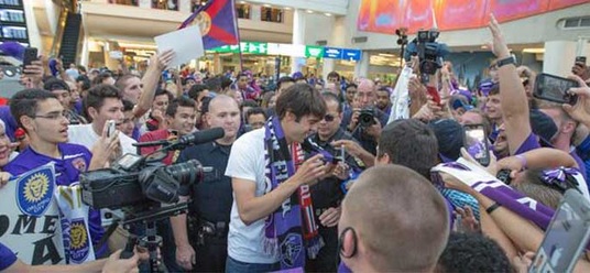 Бразилскиот фудбалер Кака по раскинувањето на договорот со Милан пристигна во американскиот град Орландо, каде што му е приреден срдечен пречек од навивачите на клубот од Флорида.