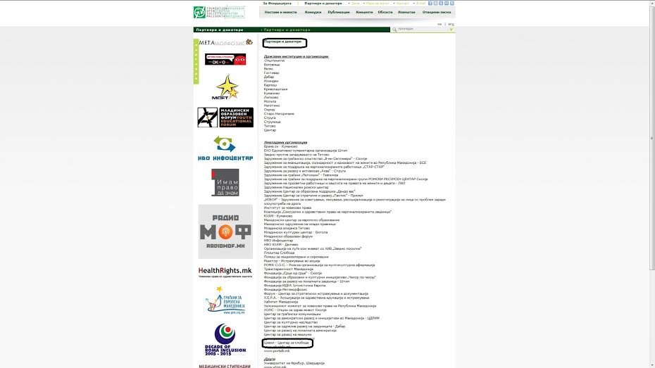 Невладината организација ја критикува работата на другите, но не и на опозицијата. Досега не се појавила во јавноста со осуда или критика на ставови или потези на опозициски партии, а уште помалку на поединци или организации поврзани со тој табор. Тоа е организацијата што преку своите квази-екпертски извештаи ги подели медиумите на: одважни и достоинствени на една страна, за кои тврди дека новинарите се мета на секојдневни закани, притисоци, тужби и говор на омраза кој го промовираат медиумски истакнати апологети на политиките на владата и провладини медиуми, кои според нив промовирата говорот на омраза, вулгарностите и грубиот речник, додека релевантните институции тоа го дефинираат како слобода на говор.