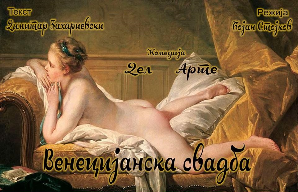 Веќе проверениот и искусен тим на битолскиот театар „Дел арте“ подготвува нова комедија, која повторно е по текст на Димитар Захариевски, а во режија на познатиот актер и пејач Бојан Стојков. Воедно, и Захариевски и Стојков ги играат главните улоги, а покрај нив во „Венецијанска свадба“ играат и Кристијан Танчевски, Елена Тодосиоска, Тамара Стојковска, Климентина Митревска, Кристина Петкоска и Михаил Ѓорѓиевски.