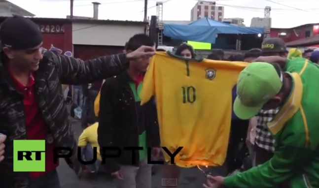 Група на бесни навивачи на Бразил го запалија националниот дрес со број 10, односно дресот на нивниот талентиран фудбалер Нејмар, кој поради повреда го пропушти полуфиналниот натпревар.