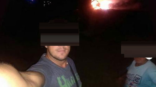 Во моментот кога полицискиот хеликоптер, во кој загинаа четворица ценети и искусни припаднии на македонските воздухопловни сили, сѐ уште гореше, ова младо момче реши дека е погоден момент за самофотографирање.