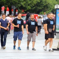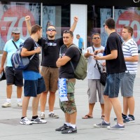 Босанските навивачи, популарните „Манијаци“, пристигнаа во Скопје, а со едно навивачко дефиле се прошетаа низ улиците на нашиот главен град.