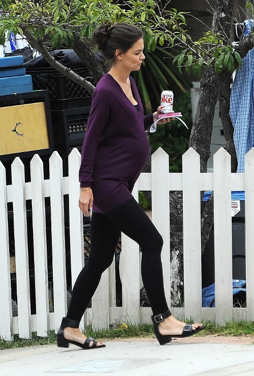 Повторно насмеана и спокојна, актерката Кејти Холмс и колегата Рајан Рејнолдс изгледаат како среќна брачна двојка, но само на снимањето на нивниот нов заеднички проект. Холмс беше фотографирана со лажно трудничко стомаче вчера во долината Сан Фернандо додека снимаше сцени за новата драма.