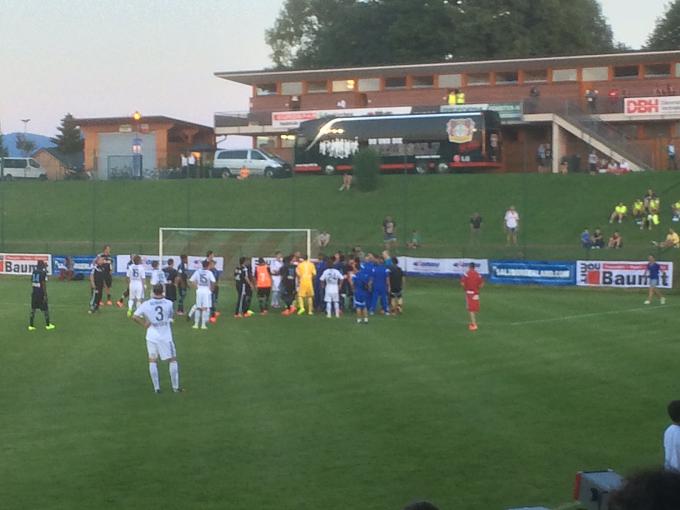 При еден груб старт на Џереми Морел врз напаѓачот на германскиот тим Хонг-Мин Сона дојде до судир меѓу играчите на двете екипи. Корејскиот фудбалер стана и го удри Морел, овој му возврати, а потоа во тепачката се вклучија и останатите играчи.