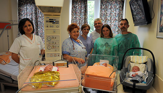 Дечињата се родени во 34-та недела од бременоста (1,9 килограм, 1,7 килограм и 1,5 килограм). Катица останала бремена со 14-тото инвитро, или вештачко оплодување.