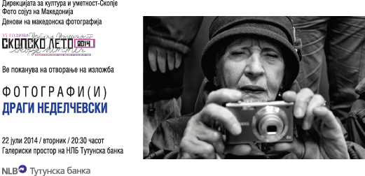 Самостојната изложба на Драги Неделчевски (Ф1 ФСМ) ќе биде отворена вечерва во 20:30 часот во Ликовниот салон на Тутунска банка. Изложбата е со наслов: „ФОТОГРАФИ(И)“.