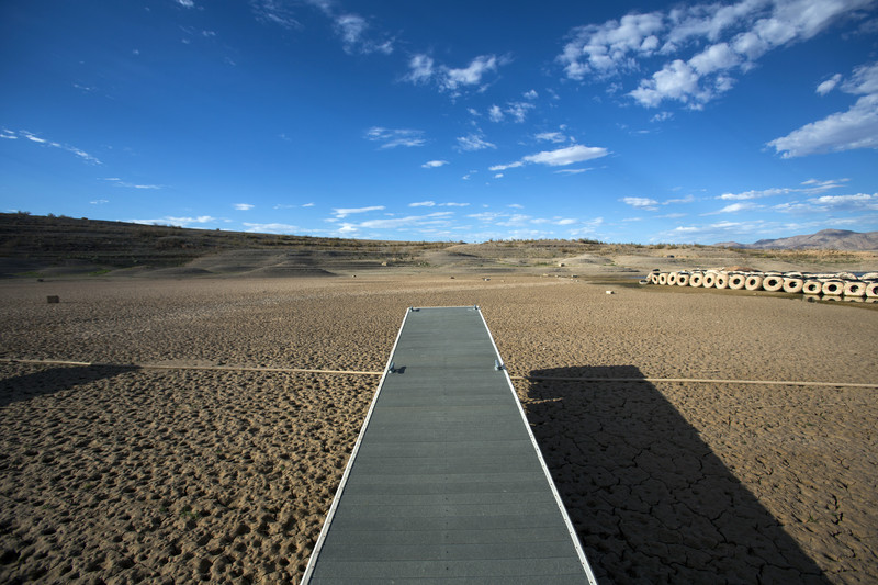 epaselect epa04329460 A picture made available on 24 July 2014 shows a severe drought afflicting the American Southwest has left parched earth beneath boat slips at the now-closed Echo Bay Marina on the shores of Lake Mead, which is at its lowest level since it was filled in 1937, in the Lake Mead National Recreation Area, Nevada, USA, 23 July 2014. Formed after construction of the Hoover Dam, Lake Mead is the largest reservoir in the United States. Yet it is currently at just 39 percent capacity, with water levels at 1082 feet (330 meters), down from a high of 1225 feet (373 meters) in 1983. EPA/JIM LO SCALZO