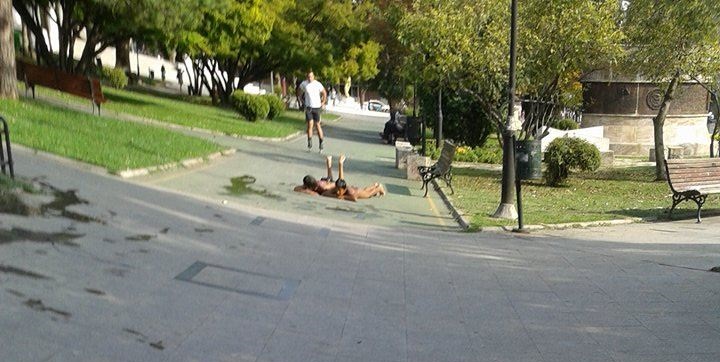 Место песок – жежок асфалт, место море – фонтаната во паркот „Жена борец“. Млади Ромчиња и ова лето спас од жештините бараат во градските фонтани.