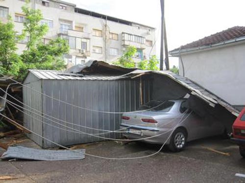 Кров од зграда во скопската населба Црниче се откорнал и паднал од невремето што го зафати главниот град.