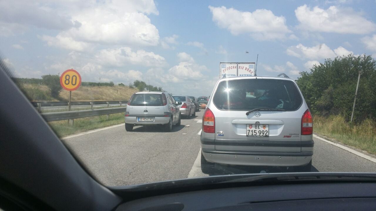 Километарски редици на возила го блокираат патот од Скопје кон Куманово. Во моментот гужва има на сите патарини, а редицата ги спојува возилата од рафинеријата ОКТА до патарината пред Куманово.