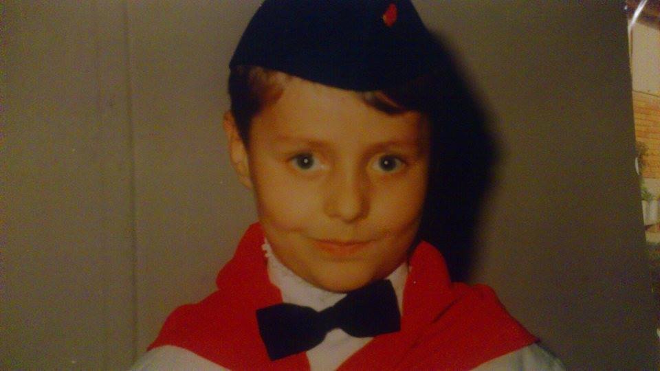 Со црвена марама и капа со петокрака и овој македонски актер како дете бил дел од Титовите пионери. Денес 32-годишниот Славиша Кајевски е важен дел од Македонскиот народен театар, со бројни улоги зад себе.