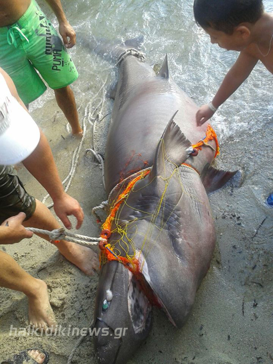 Страствен рибар на грчкиот полусотров Халкидики уловил ајкула долга три метра. Тој едвај успеал да ја извади од водата, а пријателите му помогнале да ја исфрли на плажата.