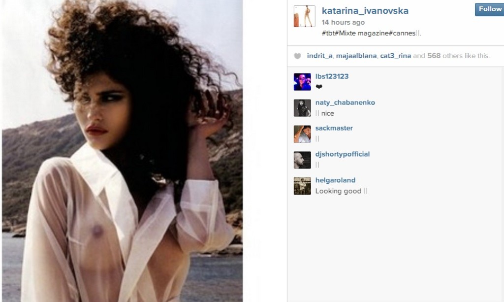 Една од најубавите Македонки е дел од нова модна кампања за магазинот „Миксте“ (Мixte). Катарина Ивановска ја сподели оваа фотографија на својот профил на „Инстаграм“ како најава за фотосесијата што следува. Овој пат со ретро-кадрички и со проѕирна бела кошула под која се гледаат нејзините гради, Ивановска праќа поздрав од преубавите плажи во Кан.