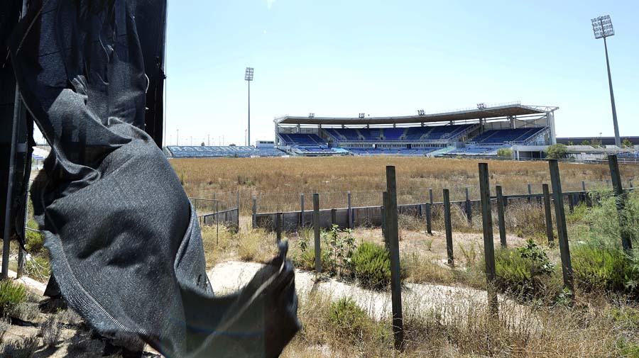 ATHENS, GREECE – JULY 31: General view of the Olympic Baseball Stadium at the Helliniko Olympic complex in Athens, Greece on July 31, 2014. Ten years ago the XXVIII Olympiad was held in Athens from the 13th – 29th August with the motto “Welcome Home”. The cost of hosting the games was estimated to be approx 9 billion euros with the majority of sporting venues built specifically for the games. Due to Greece’s economic frailties post Olympic Games there has been no further investment and the majority of the newly constructed stadiums now lie abandoned. (Photo by Milos Bicanski/Getty Images)