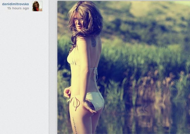 Македонската пејачка Дани Димитровска на социјалните мрежи објави фотографија, облечена во бело бикини покажувајќи ја својата завидна фигура, но нејзините тетоважи.