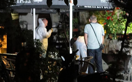 По триесетгодишниот охриѓанец Бојан П., кој пукаше и ги уби газдата на кафеаната, 56-годишниот Васил Ристоски и 38-годишниот Ромео Ѓузелоски, полицијата сè уште трага. Инцидентот се случи синоќа пред полноќ. По жестока расправија на убиецот со Ромео, кои имале меѓусебни нерасчистени сметки од криминални бизниси во Холандија, во која се вмешал и Васил , напаѓачот го извадил пиштолот и стрелал во двајцата. Бојан П., кој е во бегство, неодамна излегол од холандскиот затвор, таму издржувал казна затвор за трговија со дрога.