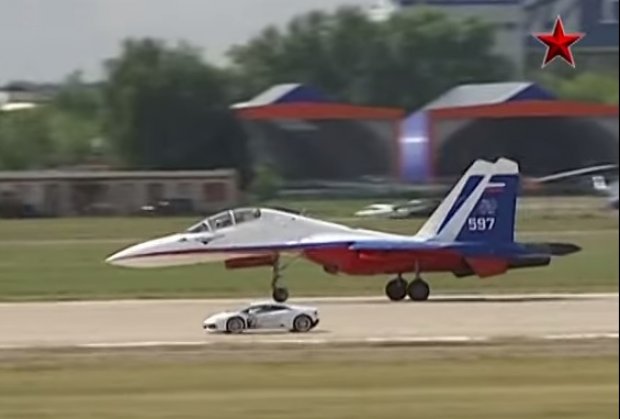 На манифестацијата „Форсаж 2014“, кај градот Жуковски, во близина на Москва моторите ги вкрстија автомобил и борбен авион.