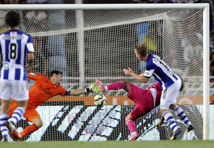 Меѓутоа, ситуацијата на теренот потполно се промени во вториот дел од првото полувреме кога Сосиедад преку Мартинез и Зурутузе успеаја да израмнат, а целосниот пресврт го направија од 65 до 75 минута. Зурутузе ги доведе домаќините во водство, а потоа точката на натпреварот ја стави Карлос Вела за конечен резултат 4-2.
