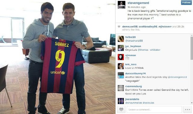 Капитенот Стивен Џерард на својот профил на „Инстаграм“ објави фотографија со порака.