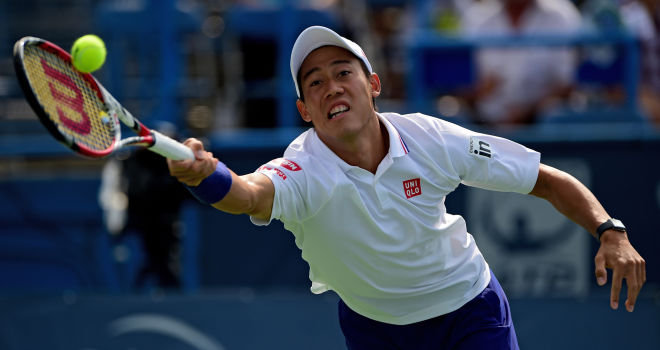 Јапонскиот тенисер Кеи Нишикори синоќа во мечот од осминафиналето го победи Милош Раонич со резултат 3-2 и со тоа стана последниот четврт-финалист на Отвореното првенство на САД.