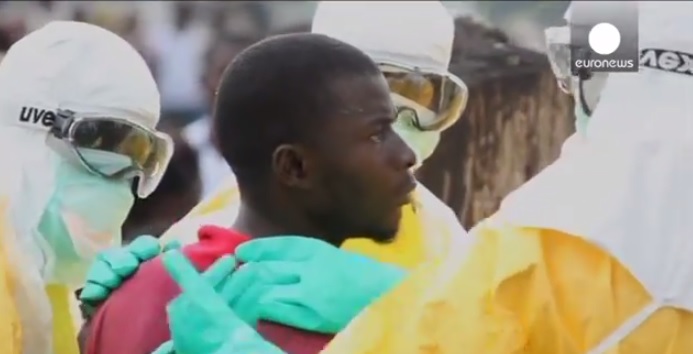 На интернет се појави видео на кое се гледа како човек заразен од ебола побегнал од карантинот во Монворија, со цел да најде храна. За среќа Лекарите успеале да го фатат и го ставиле во амбулантно возило.