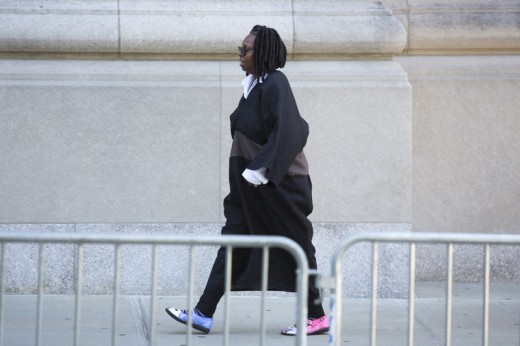 epa04390075 US actress Whoopi Goldberg arrives departs the funeral of US comedienne Joan Rivers at Temple Emanu-El in New York, New York, USA, 07 September 2014. Rivers died at the age of 81 on 04 September. EPA/JOHN TAGGART