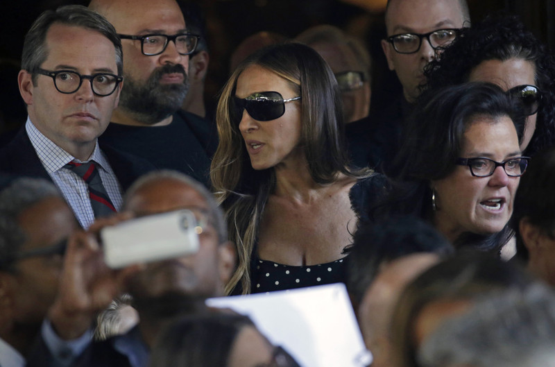 epa04389864 US actress Sarah Jessica Parker (C), her husband US actor Matthew Broderick (L) and US comedian and talk show host Rosie O’Donnell (R) depart the funeral of US comedienne Joan Rivers at Temple Emanu-El in New York, New York, USA, 07 September 2014. Rivers died at the age of 81 on 04 September. EPA/PETER FOLEY
