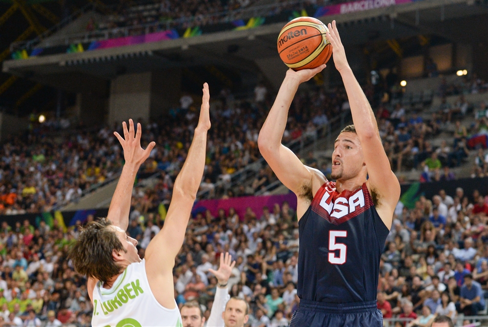 Американците го презентираа раскошниот талент и квалитет против Словенија, а мечот го добија рутински со преубедливи 119-76. Томпсон ги предводеше „ѕвездите“ од НБА со 20 поени, а Антонио Дејвис беше најснаодлив под обрачите со 11 скока. Кај Словенците браќата Драгиќ, Горан и Зоран постигнаа заедно 24 поени, но немаа расположени соиграчи за посериозен отпор против првиот фаворит за титулата на СП во Шпанија.