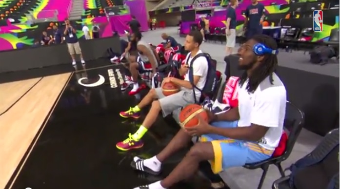 За тоа сведочи и последниот тренинг на кој крилниот центар на Денвер, Кенет Фарид, и плејмејкерот на Голден стејт, Стеф Кари, вежбаат шутирање, но од клупата.