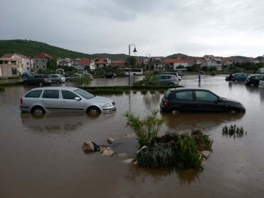 Obilna kisa koja je danas padala na vodickom podrucju uzrokovala je velike stete i u Tribunju, a citavo mjesto je na nekoliko sati ostalo bez struje.