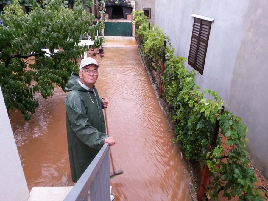 Obilna kisa koja je danas padala na vodickom podrucju uzrokovala je velike stete i u Tribunju, a citavo mjesto je na nekoliko sati ostalo bez struje.