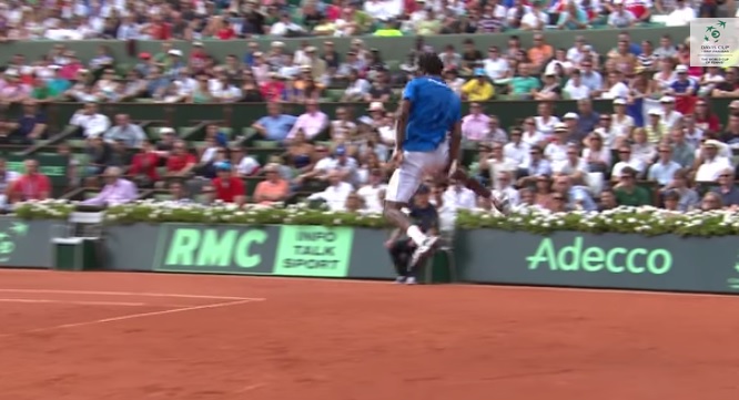 Во полуфиналето на Дејвис-купот, каде што Франција ја совлада Чешка со 3-0, Гаел Монфилс го направи најспектакуларниот потег досега.
