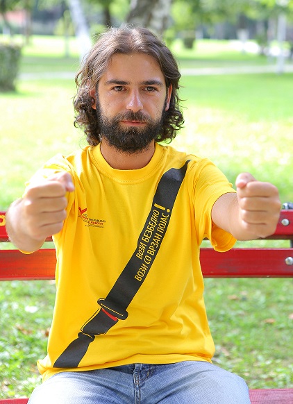 Ја поддржувам кампањата за безбедност во сообраќајот и со задоволство ја облеков жолтата маичка која претставува симбол на кампањата. Пред само една недела, за жал, учествував во сообраќајна несреќа, ме спаси безбедносниот појас. Да не ги почитував правилата, денес можеби немаше да бидат тука. Среќен сум што во несреќата останав неповреден и немаше жртви. Почитувајте ги правилата, почитувајте го животот. Користете безбедносен појас и возете со пропишана брзина.