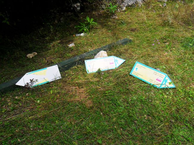 Патрола составена од членови на извидничкиот одред „ Пионер“ , викендов, при посета на националниот парк Галичица затекнаа непријатна глетка- искршени патокази и знаци, уништени од страна на несовесни посетители на паркот