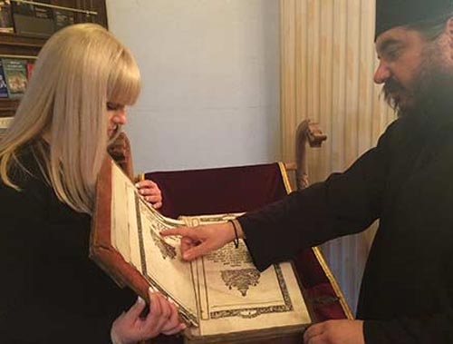 На средбата со отец Доситеј и монашната заедница беше врачена обезбедената финансиската донација од Унијата на жени на ВМРО ДПМНЕ за реставрација на големото настолно Евангелие од 1703 година печатено во печатницата на царот Петар Велики. На овој начин се дава значаен придонес кон зачувување на капиталниот книжевен фонд од Библиотеката на Манастирот кој беше опожарен во 2009 година.